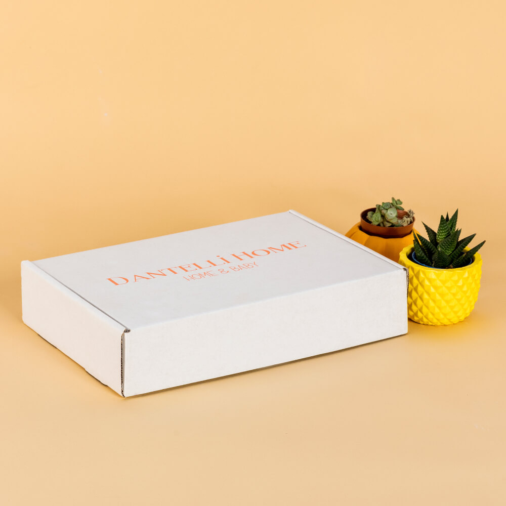 19*13*6cm [Boy*En*Yükseklik] olup;1 adet beyaz, 1 adet saman ve 1 adet kraft kağıdın birleştirilmesiyle oluşturulmuş oluklu mukavvadan üretilir.