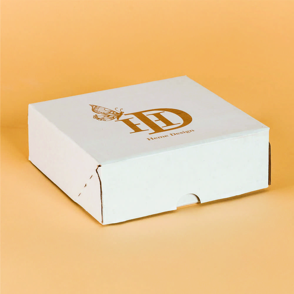 17*17*6cm [Boy*En*Yükseklik] ebatlarında olup, bir adet beyaz, bir adet saman ve bir adet kraft kağıdın birleştirilmesiyle oluşturulmuş e dalga oluklu mukavvadan üretilerek, kenarları 4 nokta sistemiyle yapıştırılmıştır.