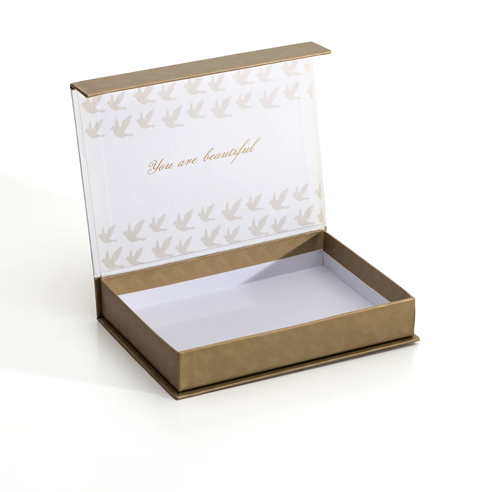 Sizin için özel olarak tasarladığımız takı kutusu, zarif ve şık görünümüyle dikkat çekiyor. Ürünümüz, yüksek kaliteli 170 gramlık mat kuşe kağıttan imal edilmiştir ve Altın rengi baskı yapılmıştır. Üzerindeki mat selefon kaplama sayesinde hem görsel olarak çekici bir görünüme sahiptir hem de dayanıklılığı artırır.
