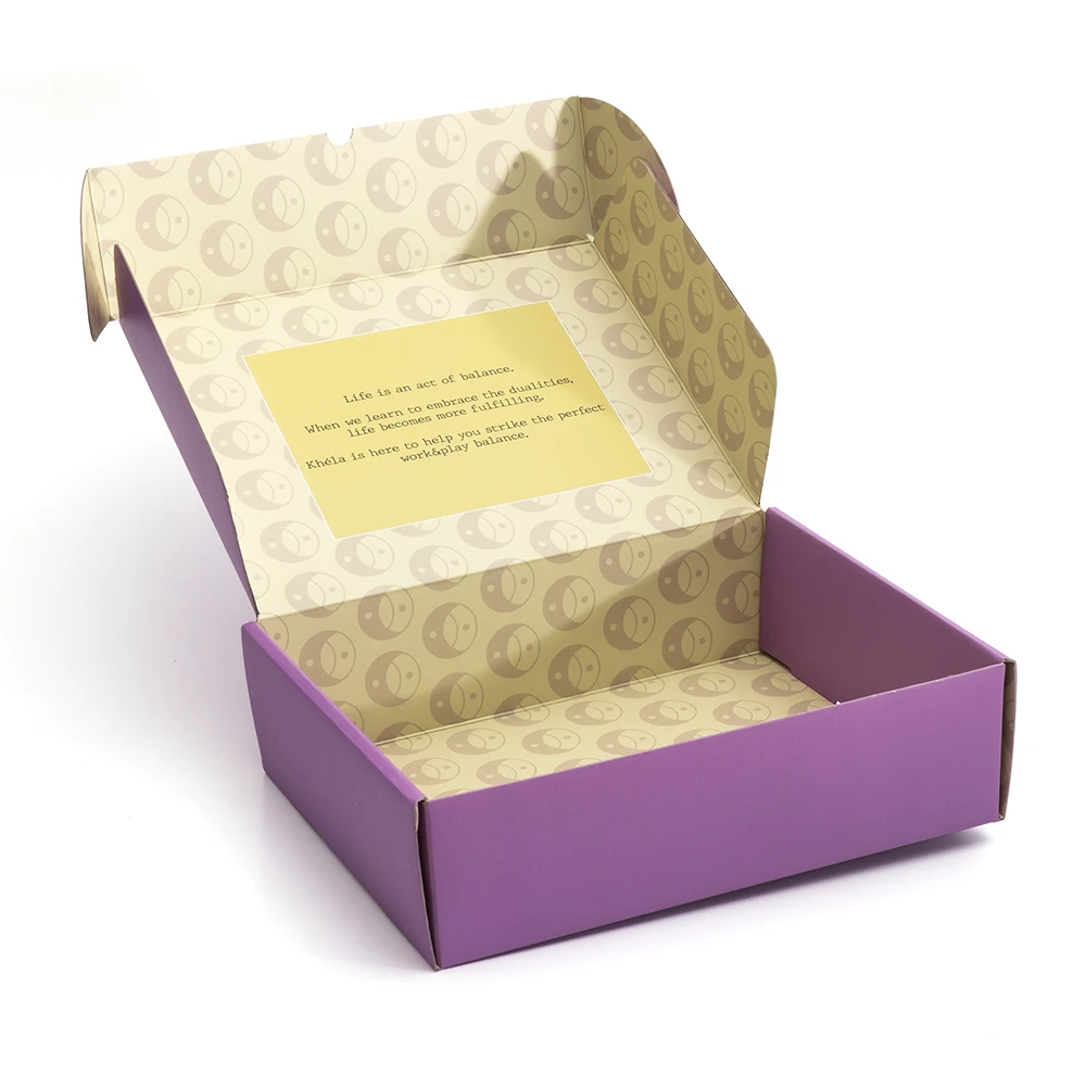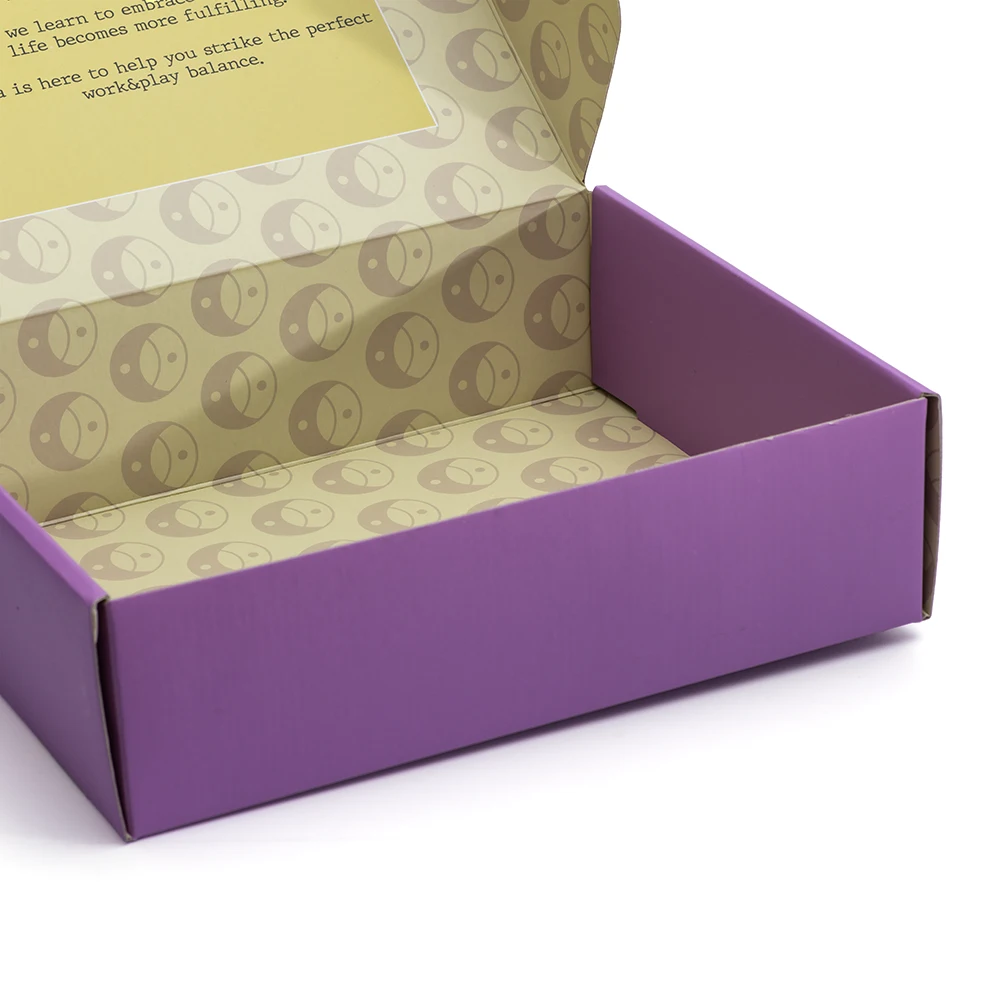 Kagıt : TS ondüle, İç Dış 230 gr Karton / Baskı : Dış Mor Zemin, Mor Yaldız, İç Renkli Baskı / Selefon : İç – Dış Mat